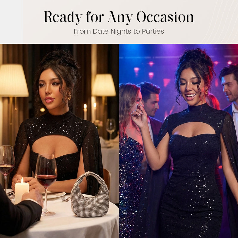 FUNKELNDES STOFFDETAIL: Mit schimmernden Akzenten verziert, die das Licht einfangen, ist es die perfekte Wahl für Abendveranstaltungen, Cocktailpartys oder besondere Anlässe.
