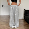 Lieferumfang: 1 * Damen-Paillettenhose mit weitem Bein und elastischem Bund