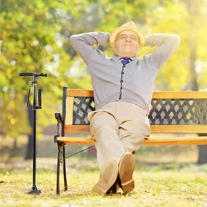 Die Spitze eines normalen Stocks kann beim Gehen verrutschen, aber der einzigartige Drehpunkt des Stocks ermöglicht es dem Stock, sich mit Ihnen zu bewegen, während der dreifache Griffkopf einen guten Halt bietet. Der Stock kann für den einfachen Transport zusammengeklappt werden.