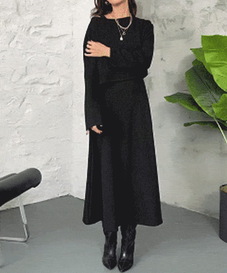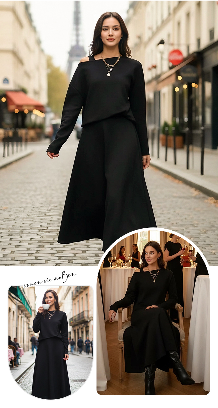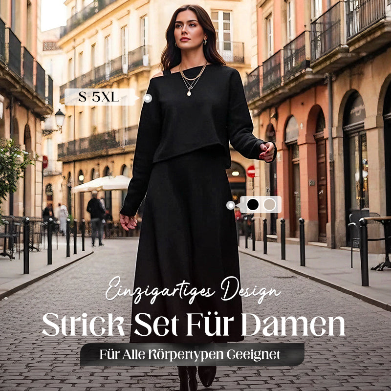 🔥Neuheiten Sonderangebot💃 2-teiliges Strick-Outfit für Damen: Midikleid mit Spaghettiträgern und bauchfreies Oberteil