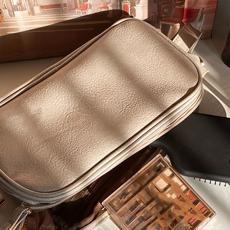 Doppellagige Kosmetiktasche Cloud aus cremefarbenem Leder, weich und hochwertig wie eine Wolke.