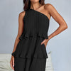 1 * Damen One Shoulder Ruffle Tiered Layered Flowy A Line Kleid