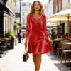 Lieferumfang: 1× Elegantes Damenkleid mit drapiertem Ausschnitt und Paillettenärmeln