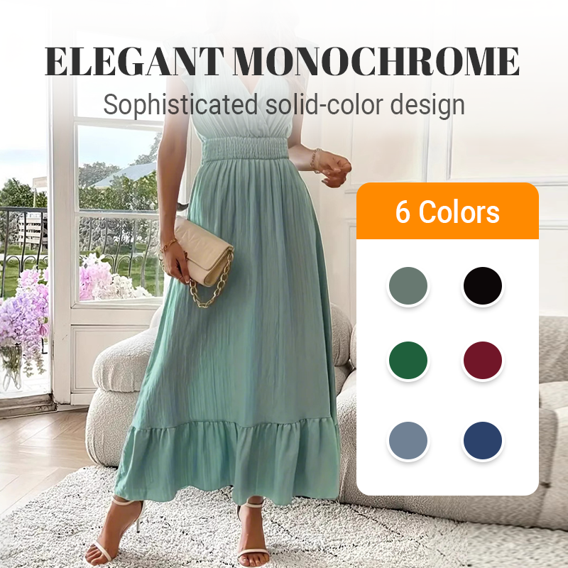📢50 % RABATT!!!⏰Maxikleid mit V-Ausschnitt, Rüschen und tailliertem Schnitt