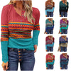 >> Imprimé ethnique tribal, épaules tombantes, tricot côtelé, pull court Jersey