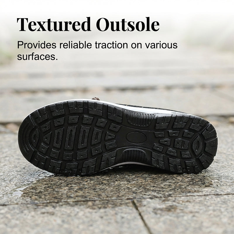 ZUVERLÄSSIGE RUTSCHFESTE LAUFSOHLE – Gehen Sie sicher auf verschiedenen Oberflächen. Die strapazierfähige Gummilaufsohle verfügt über tiefe Rillen, die die Reibung erheblich erhöhen und für überragende Griffigkeit und Stabilität sorgen, um versehentliche Ausrutscher und Stürze zu verhindern.