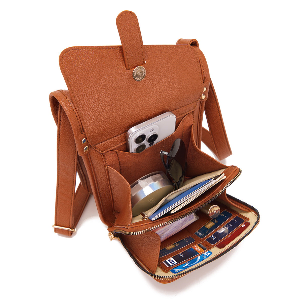 In der Crossbody-Tasche mit integriertem Portemonnaie haben Sie Ihr gesamtes Bargeld und Ihre Kreditkarten geordnet und sofort griffbereit. Außerdem ist sie mit Metallreißverschlüssen ausgestattet, die Ihr Hab und Gut und Ihre Daten besser schützen.